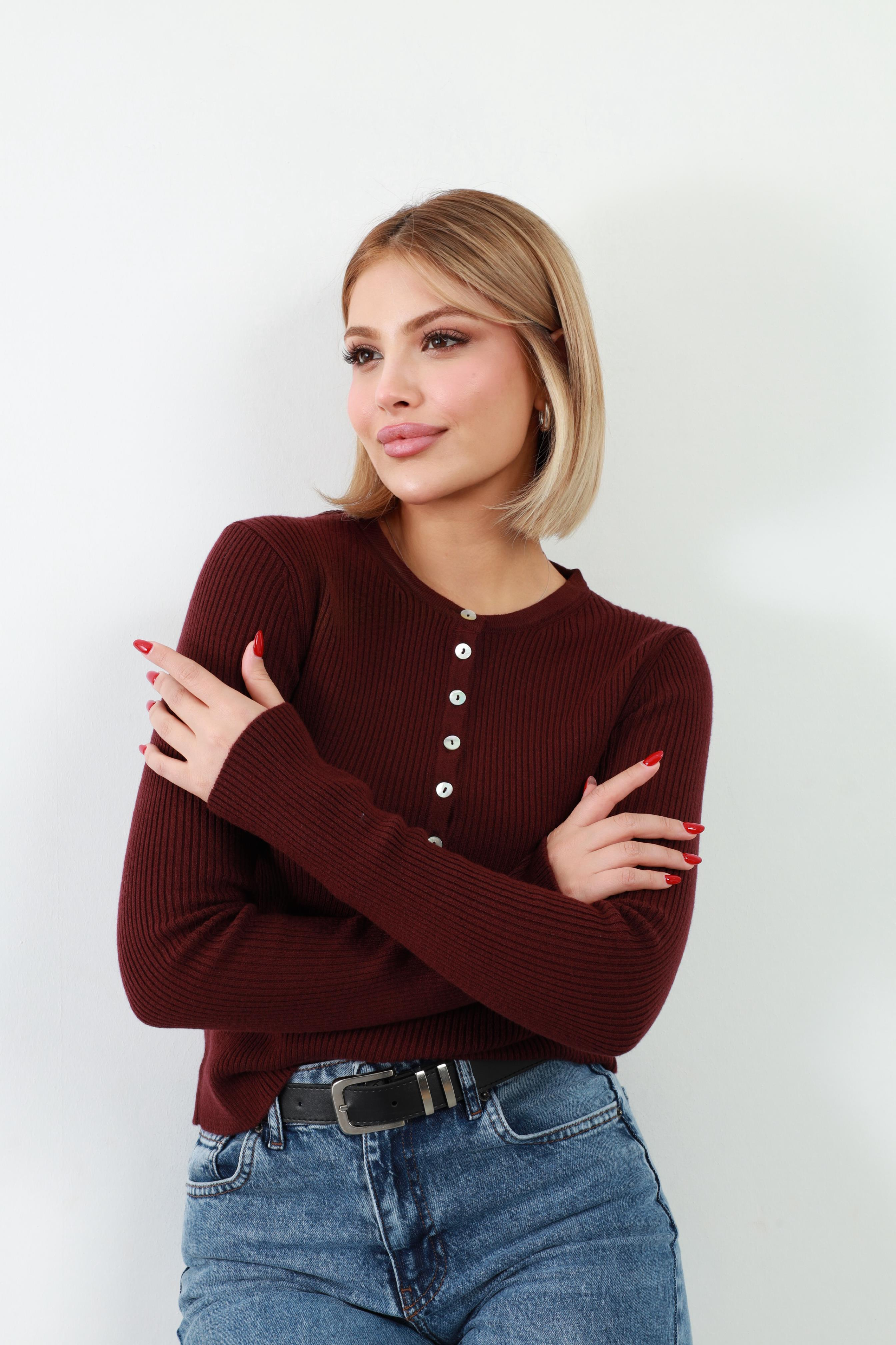 Bisiklet Yaka Yünlü Düğmeli Triko Kazak