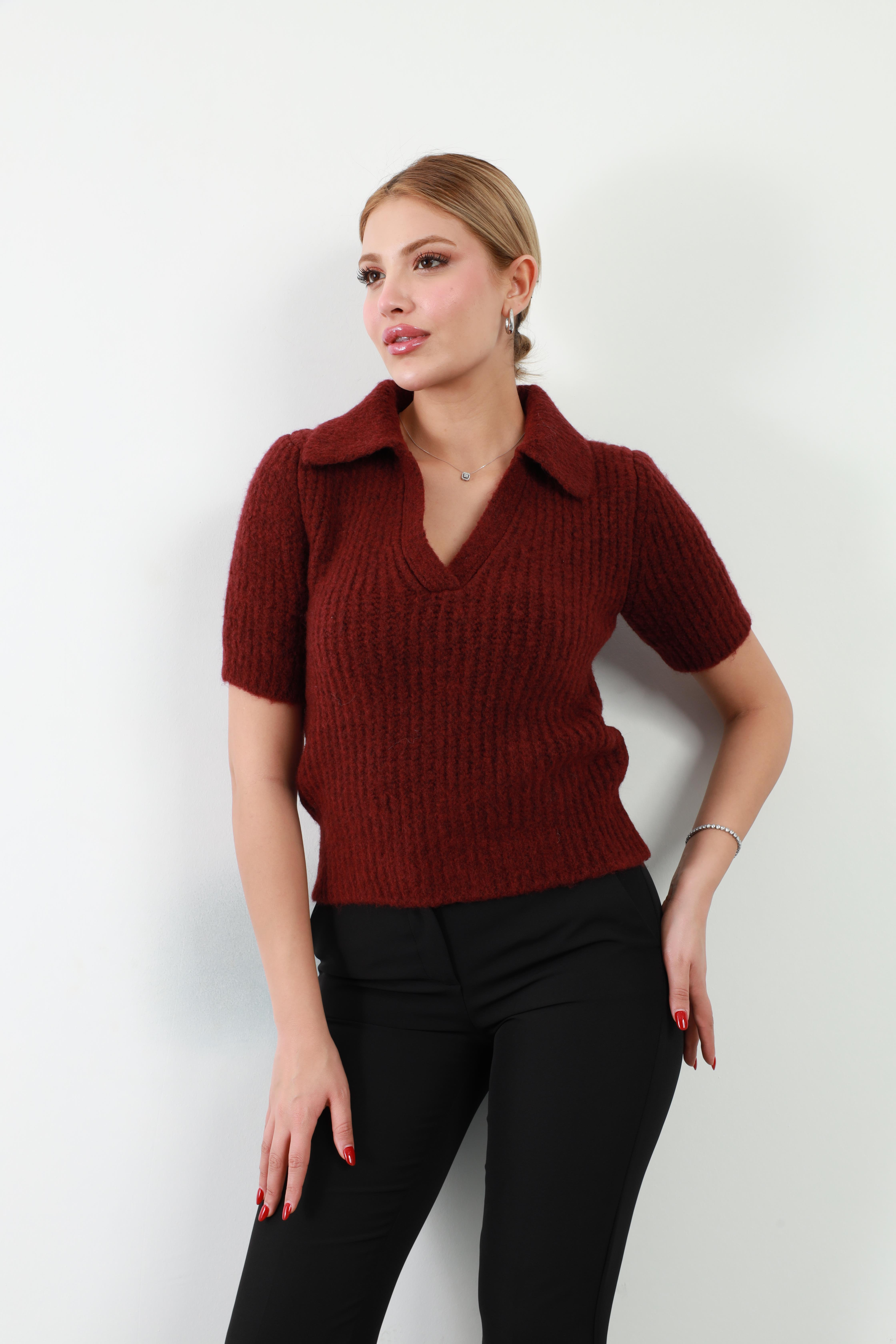 Polo Yaka Yumuşak Dokulu Triko Kazak